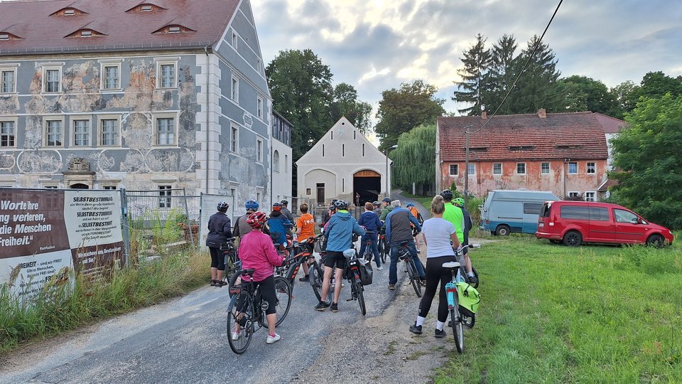 Bei angenehmem Fahrradwetter radelten über 20 Radfahrbegeisterte im Rahmen der fünften Feierabendtour durch das Finstertor hinauf zum Friedhof und dann auf ruhigen Wegen und Nebenstraßen aus dem Neißetal vorbei am Schloss in Oberneundorf weiter nach Kunnersdorf in's Schöpstal und von da nach Görlitz zurück. Vielen Dank an Michael Zimmermann für die Vorbereitung und Durchführung dieser angenehmen Tour, die mit einer Einkehr in Königshufen endete.